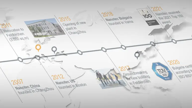 纳诺达克于 1996 年推出了第一台具有集成控制器的即插即用电机,是一个对公司成长至关重要的里程碑。纳诺达克至今仍然非常重视研发工作,以全力打造满足用户需求和要求的驱动解决方案。研发部门和小批量生产工厂位于保加利亚的 Feldkirchen,而位于中国的生产基地则负责大批量生产,然后在德国作进一步加工。