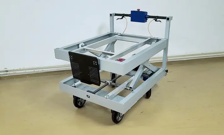 它的工作原理是这样的:Os.cart 通过一个由螺杆驱动、高度可调的剪刀装置向上移动,直到与赛车驾驶舱处于同一高度。通过这种方式,可以方便地拆卸和安装电池,同时 Os.cart 提供符合人体工程学的支撑,只需极小的力气。