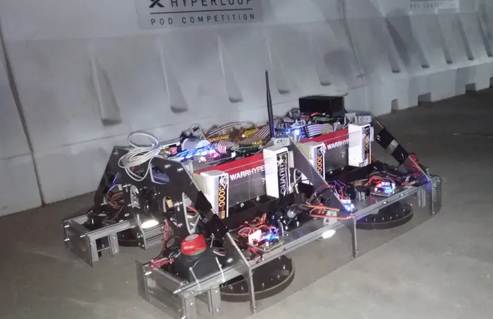 来自慕尼黑大学的 WARR Hyperloop 团队制造了一个浮动容器。通过四个直线步进电机将容器提起,以启动悬浮驱动装置。其中采用了四台尺寸规格为 NEMA 14 的 Nanotec L3518S1204-T6X1-A25 直线步进电机。当驱动装置旋转后,"Nanotec 支脚" 将通过磁力自动收起,并使容器悬浮。可以运输最大 50 kg 的有效负载。来源和照片:Domenik Radeck