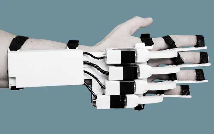 我们祝贺 Dominic Libanio、Christian Schorr 和 Pascal Lindemann 荣获“Jugend Forscht”地区竞赛冠军以及莱茵兰-普法尔茨州创意竞赛第二名。这个得到 Nanotec 电机支持的项目旨在开发一款手部治疗仪器。由于成本和时间因素导致运动疗法无论是在规定上还是在执行上,都无法到达所需的限度,所以手部在接受手术和后续治疗后通常无法达到最佳治疗效果。由此可能造成手指关节的基本运动受限,运动机能敏感性失常。这款手部治疗仪器将为医生和理疗医师提供支持。该仪器为每根手指提供可独立调节的机械机构,这些机械机构由 Nanotec 线性电机驱动。