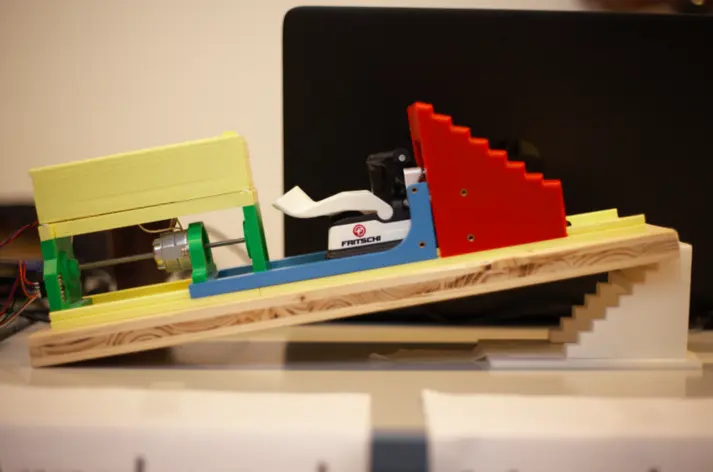 在柏林经济学院,应用工业电子专业的学生受托开发一款机器人,要求该机器人能够根据定制软件建造任意高度和形状的墙壁。一个由机载 ATmega32 控制的虚拟自动无线运载工具在六个月之内建成。这一运载工具由两个机载 Nanotec 步进电机驱动,每个电机带动一个轴装外铝轮毂,实现精准位置控制。前后两个支撑架在增加该运载工具重量的同时,还能在运载工具行驶过程中来回滑动,从而确保稳定性。前部线性执行器推动一个手臂沿线性导轨上下移动。配备电磁铁的手臂可以提放木块,而木块则用金属板固定并放在预设位置。该运载工具由 12 伏锂聚合物电池供电。借助直观的用户界面,用户可以操控运载工具在基站和建筑工地之间行驶,最终建成高度不同的墙壁。Marc Zechel、Robert Fibich