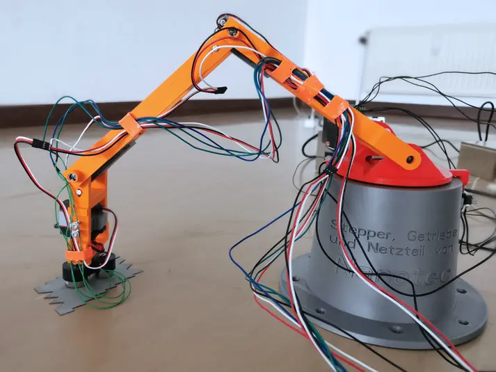 来自 HTL Rennweg 的一支学生队伍搭建了一个具有五个旋转轴的分拣机器人。该机器人可拣起物体并将其放置在另一个位置。