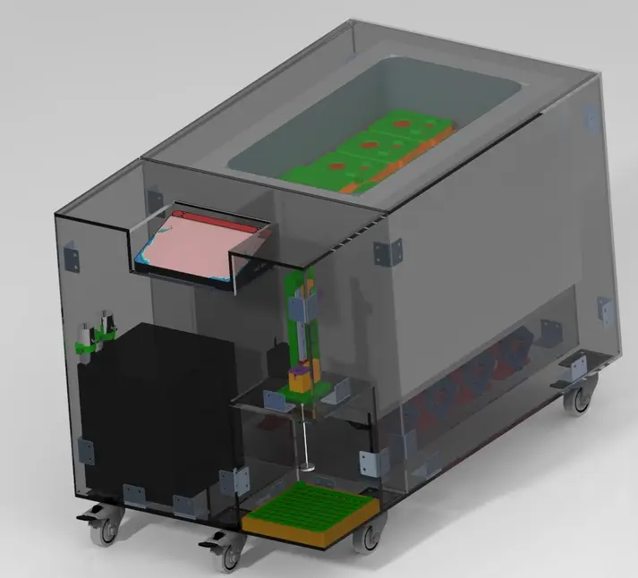用户可通过触摸屏或 Android 应用定义混合比例。Octa-Mix 包含八个饮料槽,能够处理复杂的配方,包括各种液体,如水、糖浆或浓缩液。通过使用一个蠕动泵系统,可确保精确的剂量进给。该系统由九个 ST4118 s步进电机控制,这些电机由 Nanotec 提供,作为大学项目资金的一部分。