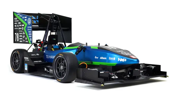 汉堡理工大学 (TUHH) 的 e-gnition Hamburg 团队自 2011 年以来一直在打造电动赛车。该团队由约 60 名学生组成,并成功地定期参与世界最大的工程竞赛“学生方程式赛车”(Formula Student)。在 2020 年赛季,该团队首次采用组合设计理念设计的同一辆车在无人驾驶和电动两项比赛中参赛。