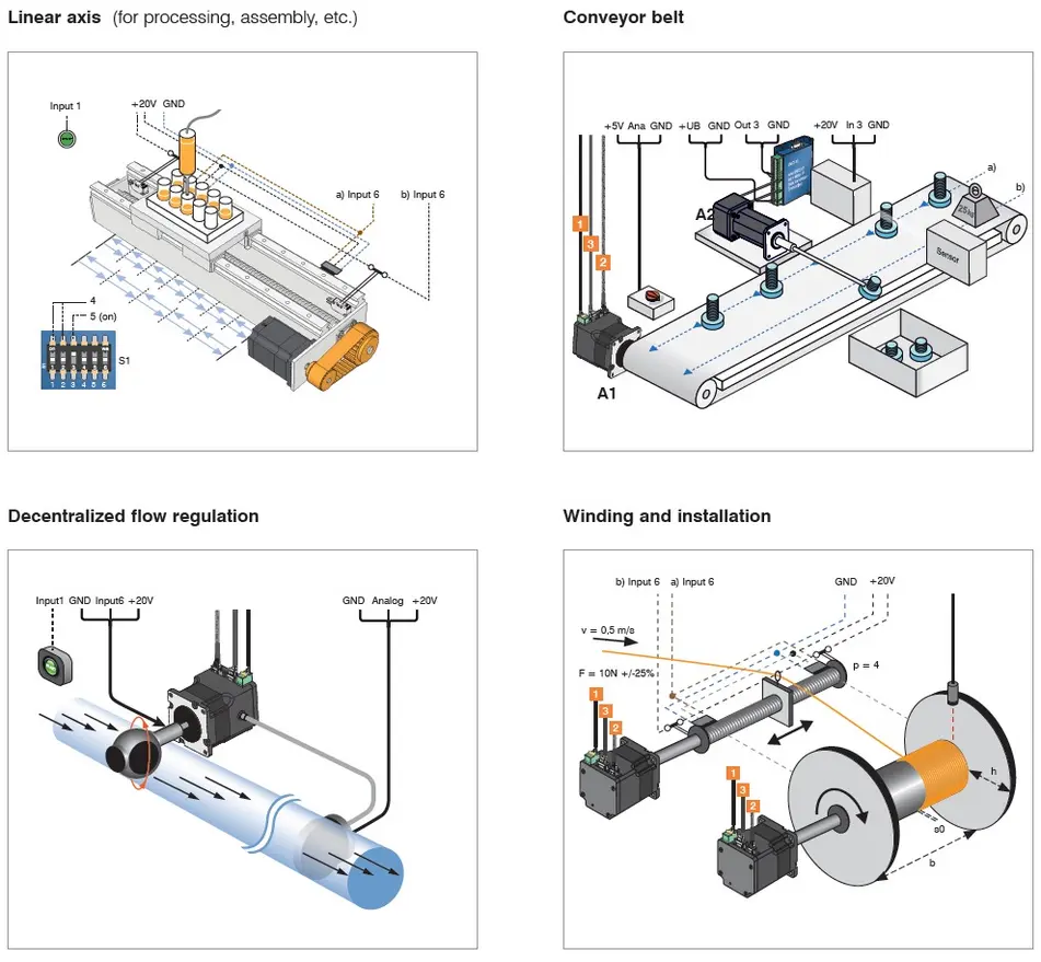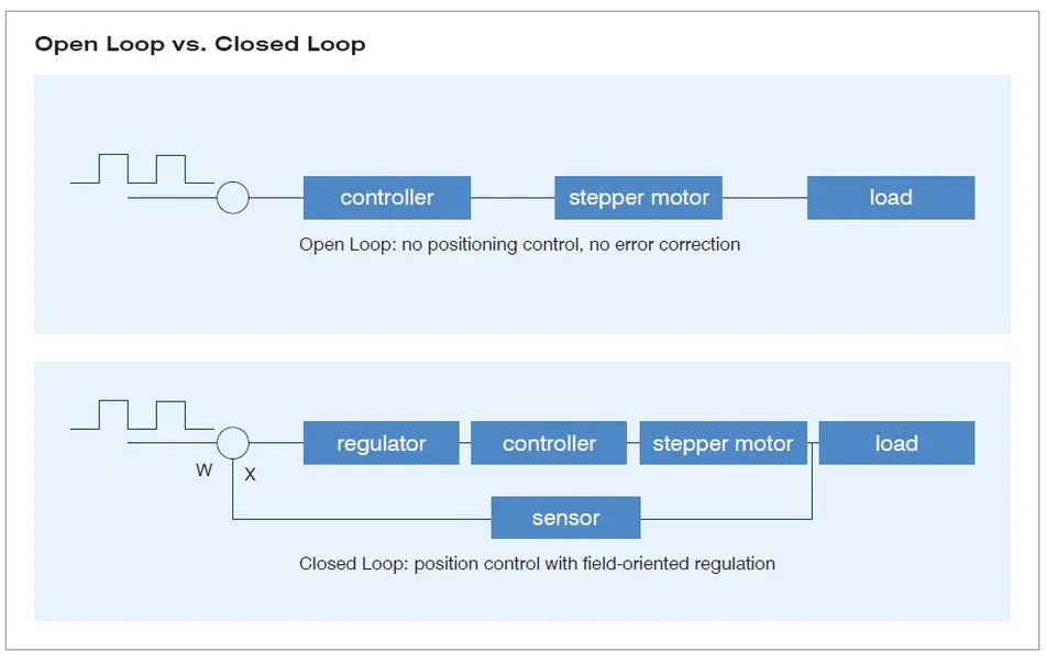 闭环技术 步进电机 Functionality 具有闭环功能的步进电机融合了步进电机和伺服电机技术的优点。它们比标准步进电机运行更安静、共振更少,同时又能够实现位置反馈和控制,校正时间短,并且不再失步。在需要满足节能、平稳运行及高负载承受性的要求时,它们能够取代步进电机。与伺服电机相比,闭环步进电机的优势在于:可在低转速条件下实现高转矩、校正时间短、定位准确且无后部摆动、更小且尺寸价格更低。 闭环方法也被称为通过编码器产生受到磁场定向控制的正弦换向。闭环技术的核心是根据功率调整电流控制以及控制信号反馈。通过编码器获得转子的位置,并在电机线圈中产生正弦形状的相电流。磁场的矢量控制确保定子的磁场总是垂直于转子磁场,而电场强度则精确地对应于所要求的转矩。绕组中的电流级别受到控制,保证作用力均匀一致,使电机平稳运行,从而实现精确的控制。 真/假闭环 某些步进电机虽然声称具有闭环功能并可配合编码器使用,但却不能通过正弦换向电流控制来进行磁场定向控制。这种步进电机只检查步进位置,却不能纠正运行中的步进角度误差。具有磁场定向控制功能的真正闭环步进电机能够补偿运行过程中的步进角度误差,还能在整步内对负载角误差进行纠正。 与标准步进电机相比的优势经典步进电机是可靠而经济的驱动器,可用于行进至固定位置。它们在开环模式中运行,不反馈控制信号。其局限性是缺少位置反馈,原因是过载等因素所造成的步距错位或失步不会被检测到。此外,当频率较低时共振行为还会加剧,而负载小幅增加或转矩峰值都会造成电机失步、同步失败、甚至完全停转。 闭环步进电机是经典步进电机技术的进一步发展。它们消除了经典步进电机的局限性和缺点:不需要计算或购买安全储备(通常高达 50%)在负载浮动时具有更高效率,过载时不会停机 由于智能电流调节而实现节能运行 几乎无共振 由于发热和振动更少,轴承的使用寿命更长 即便在高转速时也能达到高转矩,因此加速时间更短 凭借监测和纠正实现精确定位 与伺服电机相比的优势 Nanotec 的闭环步进电机可在众多应用(例如卷绕应用或传输带驱动)中取代伺服驱动器。不仅旋转速度和位置能够得到更精准的控制,还能控制转矩(在转矩模式下,通常像卷绕应用一样需要这种控制)。闭环步进电机将二者的优点集于一身。因此,您不仅能够获得最大转矩、最高效率和最佳动力,还能将转矩波动降至最低,使电机运行极为平稳。 在转矩模式下,闭环步进电机的作用类似于一个弹簧 – 弹力特性曲线可通过电位表进行设置。因此,电机会提供稳定的作用力,即便是在电机停顿需要抵抗某个作用力时也是如此。当作用力减小时,电机开始根据作用力减小的比例转动,直至达到设置的电流和转矩值。所以,闭环步进电机可完美适用于各种卷绕、张紧和挤压任务。 在具有下述要求的应用场合,闭环步进电机可充当替代方案:需要在转速低于 500 rpm 的无变速箱紧凑型低成本解决方案中实现高转矩, 需要快速调试而无需昂贵的优化,需要在停顿时保持负载位置不变, 需要避免暂时和自由振荡行为(在伺服电机中非常典型,尤其会在具有可变负载和震动时出现,可造成不容许的步进误差)。在突发负载变化时,伺服电机会错失定位,必须进行修正。闭环步进电机的理想应用领域:多轴应用(串行、Ethernet、EtherCAT、CANopen)具有负载变化的定位任务卷绕应用皮带驱动(启动/停止、定位)计量泵、填充设备半导体安装晶圆生产纺织机械/工业缝纫机机器人测试和检查系统要求安静运行、校正时间短、定位精准的应用