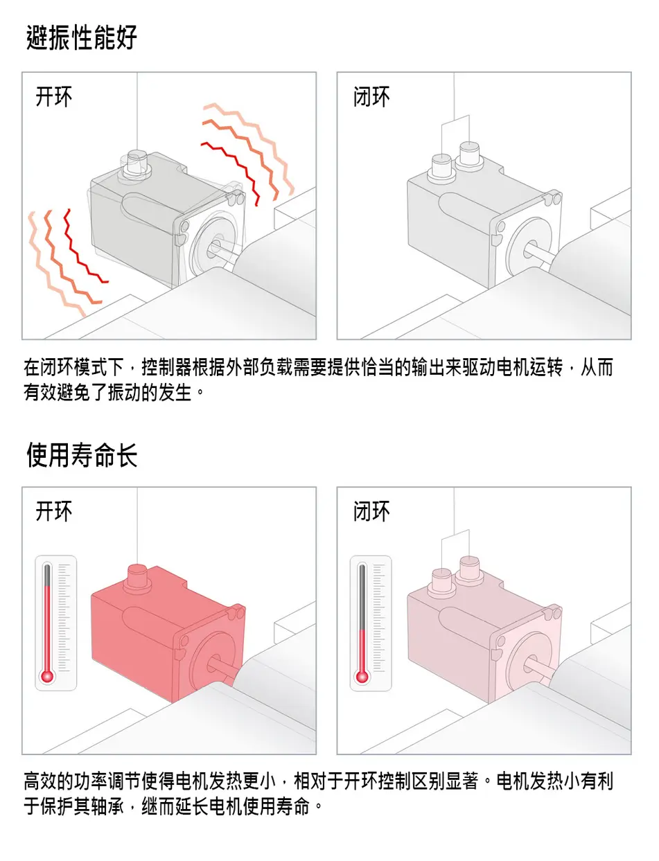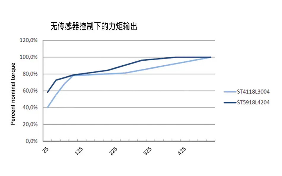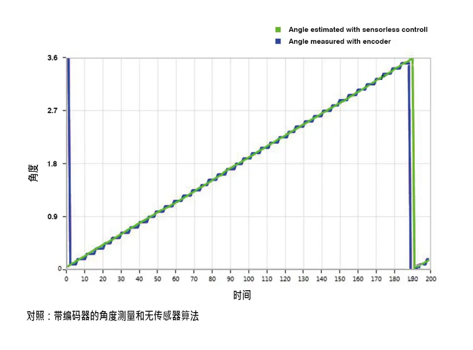 步进电机的无传感器控制 步进电机 Functionality 闭环步进电机替代 BLDC 电机 长期以来,对于那些不需要伺服电机高性能的应用场合,步进电机技术经常被视为一种高性价比的替代方案。受益于其具有吸引力的生产价格和相对较高的转矩与尺寸比,步进电机一直在仪器工程领域广为使用。然而,对于机械工程中的辅助轴而言,伺服设备开始越来越受青睐。尽管采购成本更高,但相比于步进电机需要繁琐的斜坡测试以避开共振区域,以及由于缺乏反馈而使得选型更加困难等诸多不利因素,伺服电机依然在小批量生产中具有很大的吸引力。近几年,这种趋势由于磁场定向“闭环”控制步进电机技术的发展而逐渐扭转。闭环技术的核心是根据功率调整电流控制以及控制信号反馈。此类步进电机的控制方式与伺服电机完全一样:通过编码器信号检测转子位置,在电机绕组中产生对应的正弦相电流。磁场的矢量控制确保了定子磁场总是垂直于转子磁场,而电场强度则精确地对应于所要求的转矩。因此,闭环步进电机本质上就是一个多极数的无刷直流伺服电动机 (BLDC)。传统步进电机技术的各种缺点,例如共振和过热等,都不再是问题。不仅如此,相比同尺寸的伺服电机而言,当转速维持在其额定转速的 20%-50% 时,我们所获得的持续转矩可达到伺服电机的 2 到 3 倍。再加上步进电机设备的价格更加实惠,使得闭环步进电机成为替代伺服设备的经济型方案。然而,对于某些传统的开环步进电机应用领域,如实验室自动化设备或小型 CNC 铣床,闭环设备并不总是能够成功取代开环设备。尽管闭环技术在这些场合也是有利的,但由于编码器的费用昂贵,通常远高于一台小型电机,直接限制了此技术在这些应用场合的推广应用。此外,在这些应用中,步进电机本身的定位精度通常就足够了,不需要再加装编码器。 虚拟编码器取代实体编码器为了在这些应用场合发挥磁场定向控制的优势,Nanotec 开发了无传感器技术,即对步进电机采用无编码器控制,用控制器中的“虚拟编码器”来获取转子当前的实际位置和转速。无传感器设备在 BLDC 电机中已经使用多年,特别是在风扇和泵等不需要位置控制的应用中。所有无传感器设备均利用电机运转时会产生反电压(反电势),并且反电势大小与转速成正比的物理效应。最简单的无传感器控制是当线圈在换向周期内没有通电时,直接测量其反电势。然而,与标准控制相比,这种方式需要专用硬件,并且只有当速度为额定转速的 10-20% 时才比较稳定,而低于该速度则信号太弱以至无法检测。因此,要求苛刻的应用现在必须依靠一种“观测器”设备,通过电流控制器测量到的其他值,来重建那些不能被直接测量的值,如速度和反电势。这种设备的核心是在实体电机的基础上建立精确的模型,通过已知的输入值计算相关值,比如用设定的 PWM 值计算绕组的电流等。这些计算值也会通过其他方法进行测量。在每个周期中,计算所得值都会与测量值进行对比。通过这样的方法来确定观测误差,并永久调整电机模型的内部值。这样一来,那些不能被实际测量的参数,比如转速,就有了正确的估值。尽管这种方法的原理是基于一个速度函数(感应电压反映了绕组的变化),但在低速下能很好地直接测量值。结果是产生了一种可以提供位置和速度信息的“虚拟编码器”,该编码器在达到某个最小转速时开始工作,精度等同于实体光学编码器或磁性编码器。 Nanotec 的所有即插即用电机均采用磁场定向控制(闭环)。BLDC 和步进电机均基于负载函数进行磁场定向控制,两者的区别仅仅是极数不同造成的工作点不同。因此,这些电机类型都像直流伺服电机一样工作。控制所需的转子位置或者磁场角度,可以通过下述的编码器或无传感器的方法建立。我们的网站提供的白皮书和动画形象地展示了步进电机和 BLDC 电机的闭环控制原理。 无失步,无共振基于观测器的控制器成败关键因素在于所用电机模型的好坏,包括数学公式以及所连接电机的电机常数。因此,首要任务是找到一个足够精确的电机数学模型(能够在每个控制周期内进行完整计算),甚至可以借助一枚微处理器完成。从理论上来说,步进电机和 BLDC 电机的数学模型是相似的,不同点在于步进电机有两相,而 BLDC 电机通常是三相的,由于其极数多,在高速运行时会呈现出一些特别的特征。无传感器控制器在实际应用中的另一个重要方面是模型参数的识别。BLDC 控制器需要大量相关的电机参数,而这些参数在常见的数据表中往往不被提及。这使得某些设备并不是进行“真正”的控制,而只是采用一个堵塞检测机制或者简化控制手段,依赖负载函数减少电机的额定电流。但即便是这种简化控制,也需要识别和配置相关的电机阈值。相比之下,Nanotec 的无传感器设备在运行时需要的参数很少(实际上不需要用户知晓):自动设置程序会测量所连接的电机并自动确定需要的所有参数。根据电机类型,可以在 100 到 250 rpm 之间获得速度和定位信息。此信息的精度相当于具有 500 或 1000 增量的光学编码器,从而获得与通过编码器控制的电机具有一样品质的电机控制和转矩输出。甚至在低于此阀值时,无传感器控制仍可在低至 10-25 rpm 的转速下工作。只是准确度会随速度而降低,同时可达到的转矩输出也相应降低。 相比之下,无传感器设备在高转速下明显优