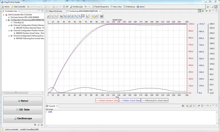 推出简化 Nanotec 电机控制器的调试和编程的新软件:Plug & Drive Studio。控制器现在可以通过各种现场总线(CANopen、Ethernet、Modbus)从电脑进行访问。 在设置时,保存控制器配置的对象目录可以通过表来读取和写入。使用预定义的过滤器,可以仅显示当前相关的对象。对象也可以通过集成的命令行进行配置。 整个通信可以被记录下来并在稍后再次回放,以便在调试过程中只需输入一次冗长的命令序列。为了调整控制器参数,集成的示波器可以以高达一毫秒的分辨率同时显示任意八个对象。 为了使用 NanoJ V2 对控制器进行编程,我们提供了一个集成的开发环境,该开发环境由一个带有自动代码添加功能的源文本编辑器、一个编译器和一个调试器组成。由于所有 Plug & Drive Studio 功能都可以同时使用,所以可以在程序执行过程中使用对象目录和示波器来跟踪控制器行为。因此,可以轻松快速地编程自定义功能。