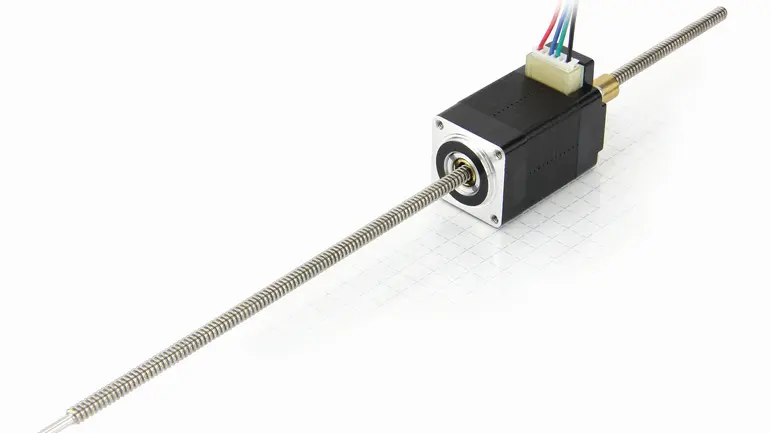 LA20 – 贯通轴式直线步进电机 – NEMA 8 说明 技术数据 NEMA 8 (20 mm) 大推力线性执行器。螺纹螺母注塑到空心轴中,并带有梯形或 ACME 螺纹。 尺寸 NEMA 8 峰值力 33.7 N – 63 N 相电流 0.6 A 分辨率 1.5 µm/步 – 10 µm/步