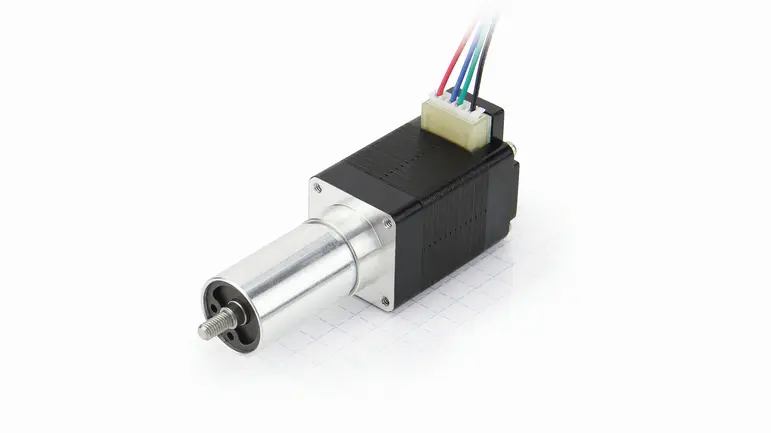 LGA20 – 固定轴式直线步进电机 – NEMA 8 说明 技术数据 紧凑型线性执行器,法兰尺寸为 20mm。集成线性导轨无需其它机械组件即可实现高精度进给。 尺寸 NEMA 8 峰值力 33.7 N – 63 N 相电流 0.6 A 分辨率 1.5 µm/步 – 10 µm/步