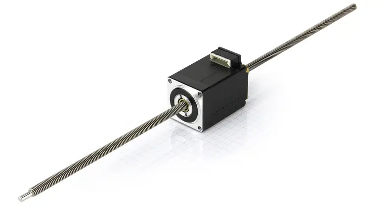 LA28 – 贯通轴式直线步进电机 - NEMA 11 说明 技术数据 灵活紧凑的直线步进电机,带 28 mm 法兰。螺纹螺母注塑到空心轴中,并带有梯形或 ACME 螺纹。请查看配件表获取匹配的丝杆。 定位时间短推力大 不同绕组集成接头 Nanotec 还提供可与该直线步进电机匹配的电机控制器/驱动器。要添加编码器,请在选择直线机构后使用配置选项。 LA28… 尺寸 NEMA 11 峰值力 50 N – 210 N 相电流 0.6 A – 1.5 A 分辨率 3.2 µm/步 – 25.4 µm/步