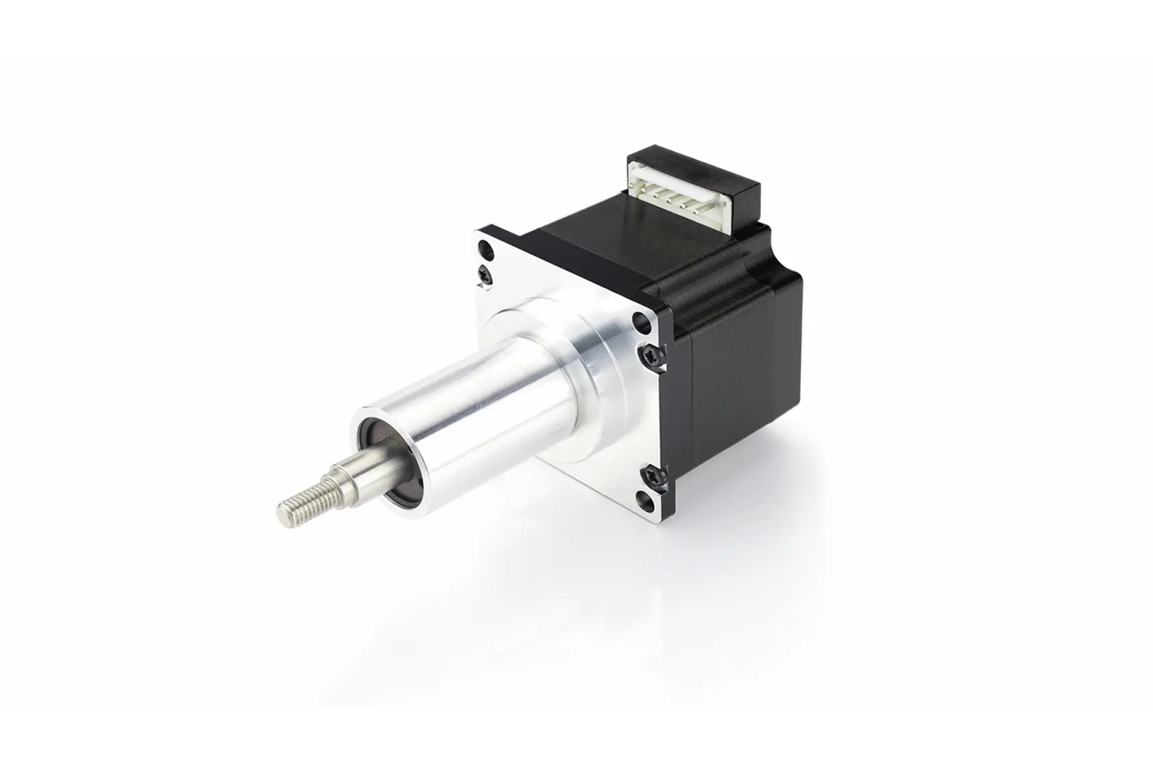 紧凑型直线步进电机,带 56 mm 法兰。集成的线性导轨无需加装额外机械部件,即可实现高精度进给,并防止丝杆转动。基于螺纹导程,优化的设计支持高达 150 mm/s 的速度。
