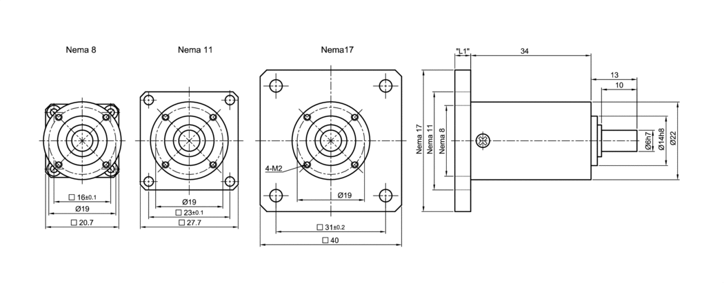 • 适用电机尺寸 NEMA 8, NEMA 11, NEMA 17