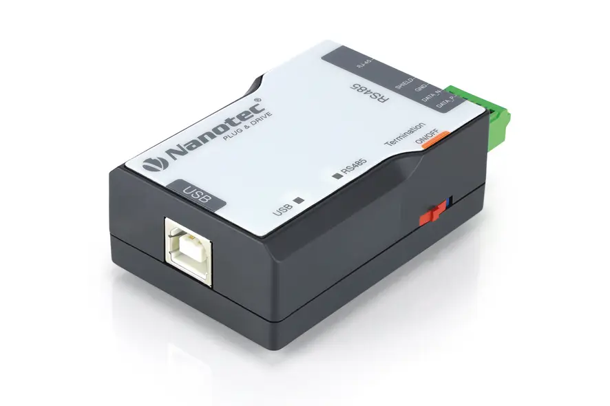 该 USB 至 RS485 转换器适用于所有 Cx、Nx 系列的电机控制器/驱动器以及附带 RS485 (Modbus RTU) 作为现场总线接口的 PDx-Cx 和 PDx-Ex 系列电机。该转换器采用电隔离设计,可防止因电位差损坏转换器或连接的设备。