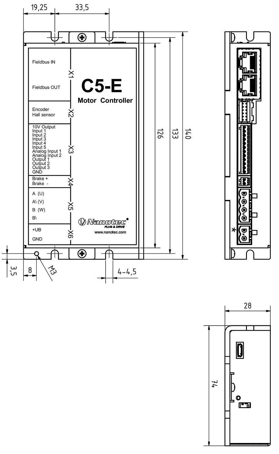 Dimensioned drawings and installation options